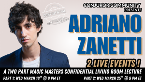 Join us for an all new experience! CC Presents MAGIC MASTERS CONFIDENTIAL - A TWO NIGHT Expanded Living Room Lecture. Adriano Zanetti Part 2